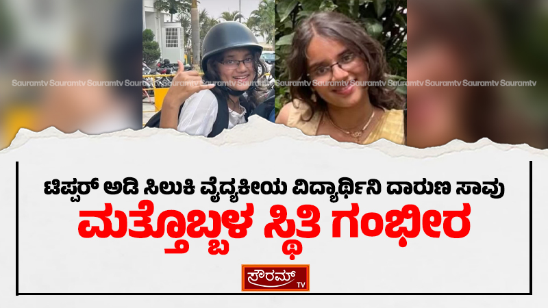ಟಿಪ್ಪರ್ ಅಡಿ ಸಿಲುಕಿ ವೈದ್ಯಕೀಯ ವಿದ್ಯಾರ್ಥಿನಿ ದಾರುಣ ಸಾವು; ಮತ್ತೊಬ್ಬಳ ಸ್ಥಿತಿ ಗಂಭೀರ
