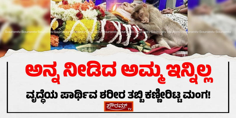 ಚನ್ನಪಟ್ಟಣ ತಾಲೂಕಿನ ಬಿ.ವಿ.ಹಳ್ಳಿ ನಿವಾಸಿ ಪಾರ್ವತಮ್ಮ (85) ತಮ್ಮ ಮನೆ ಬಳಿ ಆಗಾಗ ಬರುತ್ತಿದ್ದ ಮಂಗಗಳಿಗೆ ಆಹಾರ ಕೊಡುತ್ತಿದ್ದರು. ಅನಾರೋಗ್ಯದಿಂದ ಬಳಲುತ್ತಿದ್ದ ಪಾರ್ವತಮ್ಮ ಸೋಮವಾರ ರಾತ್ರಿ ಮೃತಪಟ್ಟಿದ್ದು, ಅವರ ಮೃತದೇಹವನ್ನು ಮನೆಗೆ ತರುತ್ತಿದ್ದಂತೆ ಮಂಗವೂ ಆಗಮಿಸಿ, ಶವವನ್ನು ತಬ್ಬಿಕೊಂಡು ಮುತ್ತಿಕ್ಕಿ ಕಣ್ಣೀರಿಟ್ಟಿದೆ.