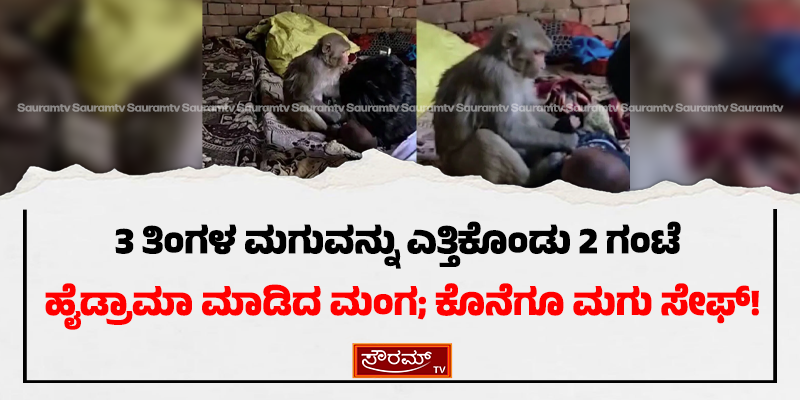 3 ತಿಂಗಳ ಮಗುವನ್ನು ಎತ್ತಿಕೊಂಡು 2 ಗಂಟೆ ಹೈಡ್ರಾಮಾ ಮಾಡಿದ ಮಂಗ; ಕೊನೆಗೂ ಮಗು ಸೇಫ್!