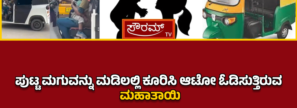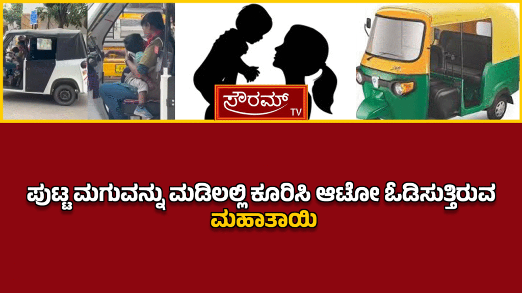 ಪುಟ್ಟ ಮಗುವನ್ನು ಮಡಿಲಲ್ಲಿ ಕೂರಿಸಿ ಆಟೋ ಓಡಿಸುತ್ತಿರುವ ಮಹಾತಾಯಿʼ