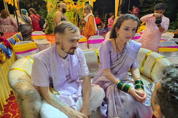 ಯುರೋಪ್‌ನ ನರೋತ್ತಮ್, ಫ್ರಾನ್ಸ್‌ನ ಜಾನ್ನವ್: ಕೊಲ್ಲೂರು ಮೂಕಾಂಬಿಕಾ ಸನ್ನಿಧಾನದಲ್ಲಿ ಹಿಂದೂ ಸಂಪ್ರದಾಯದಂತೆ ವಿದೇಶಿ ಜೋಡಿಯ ವಿವಾಹ