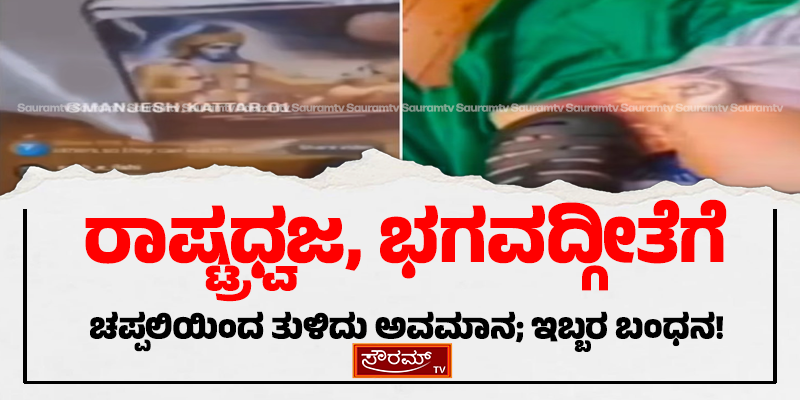 ರಾಷ್ಟ್ರಧ್ವಜ, ಭಗವದ್ಗೀತೆಗೆ ಚಪ್ಪಲಿಯಿಂದ ತುಳಿದು ಅವಮಾನ; ಇಬ್ಬರ ಬಂಧನ!