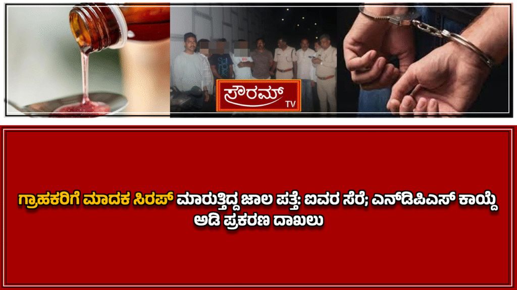 ಗ್ರಾಹಕರಿಗೆ ಮಾದಕ ಸಿರಪ್ ಮಾರುತ್ತಿದ್ದ ಜಾಲ ಪತ್ತೆ: ಐವರ ಸೆರೆ; ಎನ್ಡಿಪಿಎಸ್ ಕಾಯ್ದೆ ಅಡಿ ಪ್ರಕರಣ ದಾಖಲು