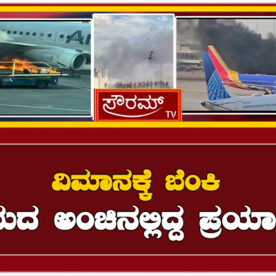 ವಿಮಾನಕ್ಕೆ ಬೆಂಕಿ – ಅಪಾಯದ ಅಂಚಿನಲ್ಲಿದ್ದ ಪ್ರಯಾಣಿಕರು