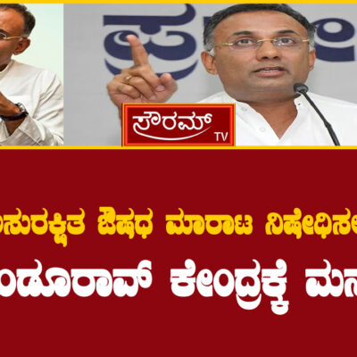 ಅಸುರಕ್ಷಿತ ಔಷಧ ಮಾರಾಟ ನಿಷೇಧಿಸಲು ಗುಂಡೂರಾವ್ ಕೇಂದ್ರಕ್ಕೆ ಮನವಿ