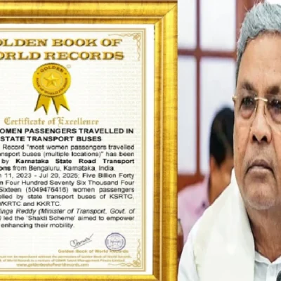 ರಾಜ್ಯದ ಶಕ್ತಿ ಯೋಜನೆ ‘ಗೋಲ್ಡನ್ ಬುಕ್ ಆಫ್ ವರ್ಲ್ಡ್ ರೆಕಾರ್ಡ್ಸ್’ಗೆ ಸೇರ್ಪಡೆ
