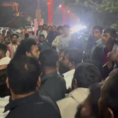 ಬಳ್ಳಾರಿಯಲ್ಲಿ ರಣರಂಗವಾದ ಜನಾರ್ದನ ರೆಡ್ಡಿ ನಿವಾಸದ ಮುಂಭಾಗ: ಬ್ಯಾನರ್ ವಿಚಾರಕ್ಕೆ ಕಲ್ಲು ತೂರಾಟ