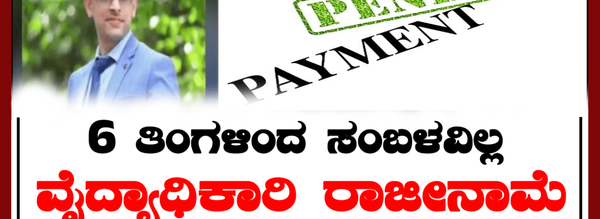 6 ತಿಂಗಳಿಂದ ಸಂಬಳವಿಲ್ಲ: ವೈದ್ಯಾಧಿಕಾರಿ ರಾಜೀನಾಮೆ
