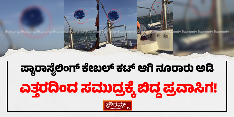 ಪ್ಯಾರಾಸೈಲಿಂಗ್ ಕೇಬಲ್ ಕಟ್ ಆಗಿ ನೂರಾರು ಅಡಿ ಎತ್ತರದಿಂದ ಸಮುದ್ರಕ್ಕೆ ಬಿದ್ದ ಪ್ರವಾಸಿಗ!