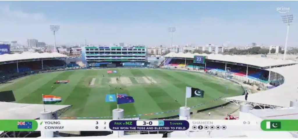 ವಿವಾದದ ಬಳಿಕ ಎಚ್ಚೆತ್ತ ಪಿಸಿಬಿ: ಕರಾಚಿ ಕ್ರೀಡಾಂಗಣದಲ್ಲಿ ಭಾರತದ ಧ್ವಜ ಹಾರಾಟ