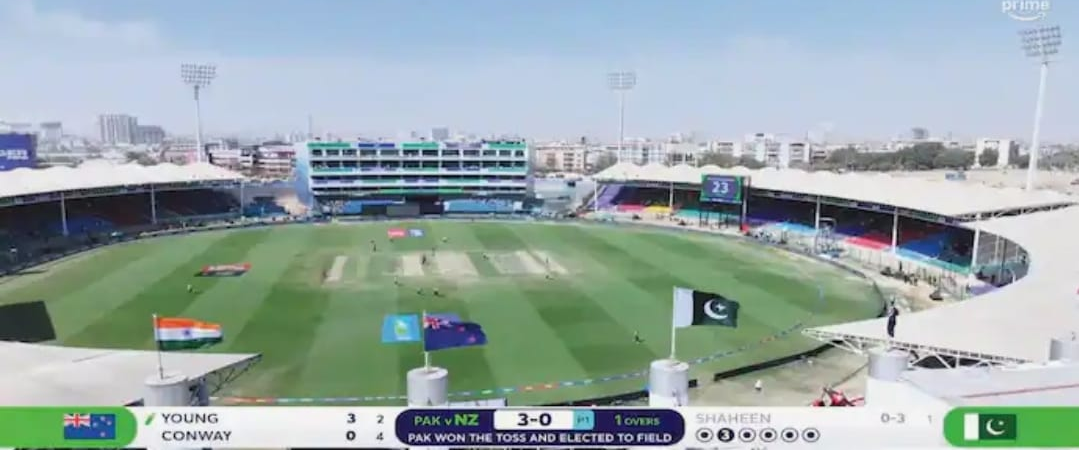 ವಿವಾದದ ಬಳಿಕ ಎಚ್ಚೆತ್ತ ಪಿಸಿಬಿ: ಕರಾಚಿ ಕ್ರೀಡಾಂಗಣದಲ್ಲಿ ಭಾರತದ ಧ್ವಜ ಹಾರಾಟ