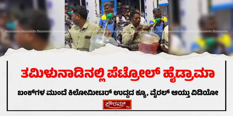 ತಮಿಳುನಾಡಿನಲ್ಲಿ ಪೆಟ್ರೋಲ್ ಹೈಡ್ರಾಮಾ: ಬಂಕ್ಗಳ ಮುಂದೆ ಕಿಲೋಮೀಟರ್ ಉದ್ದದ ಕ್ಯೂ, ವೈರಲ್ ಆಯ್ತು ವಿಡಿಯೋ.