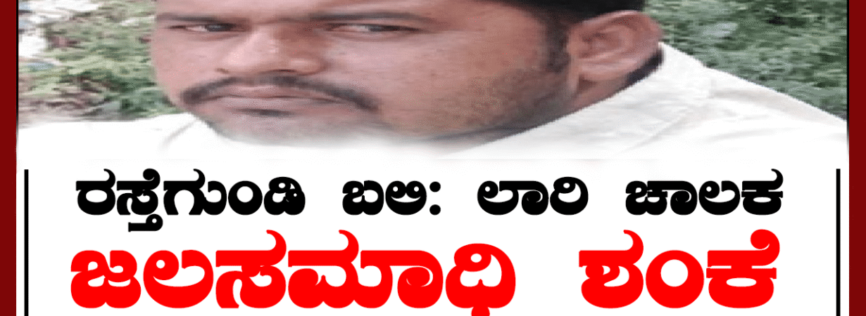 ರಸ್ತೆಗುಂಡಿ ಬಲಿ: ಲಾರಿ ಚಾಲಕ ಜಲಸಮಾಧಿ ಶಂಕೆ