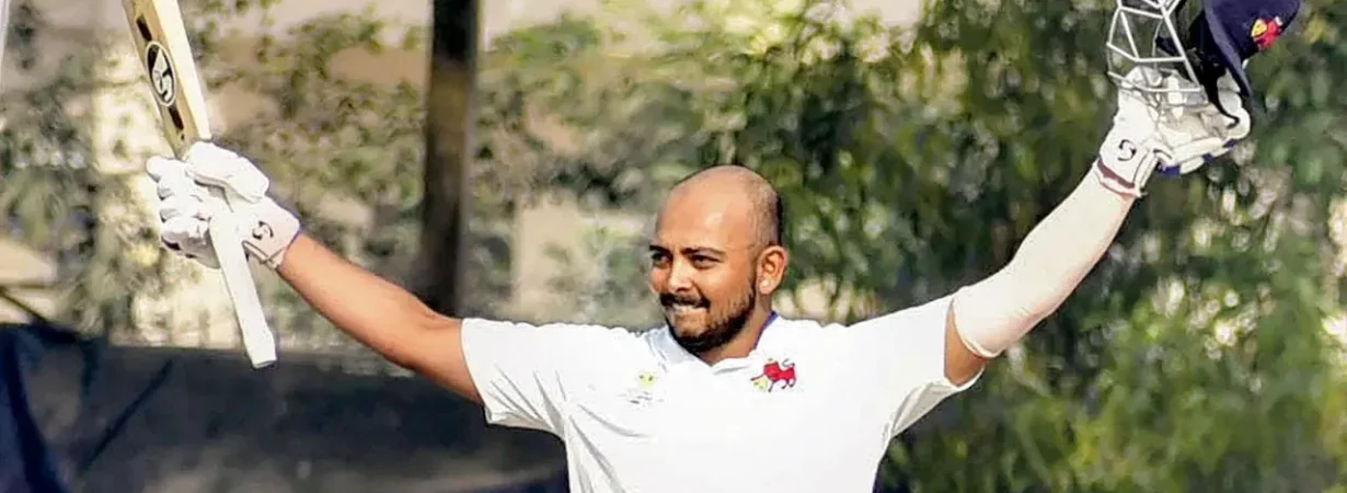 ಪೃಥ್ವಿ ಶಾ (Prithvi Shaw) ಹೆಸರು ಮತ್ತೆ ಮುನ್ನಲೆಗೆ ಬಂದಿದೆ. ಈ ಬಾರಿ ಅವರು ಸುದ್ದಿಯಾಗಿರುವುದು ಭರ್ಜರಿ ಬ್ಯಾಟಿಂಗ್ನಿಂದ ಎಂಬುದು ವಿಶೇಷ. ಕಳೆದ ಕೆಲ ವರ್ಷಗಳಿಂದ ಕಳಪೆ ಫಾರ್ಮ್ ಹಾಗೂ ವಿವಾದಗಳಿಂದ ಸುದ್ದಿಯಲ್ಲಿದ್ದ ಪೃಥ್ವಿ ಇದೀಗ ಮತ್ತೆ ತಮ್ಮ ಅಬ್ಬರ ಶುರು ಮಾಡಿದ್ದಾರೆ.