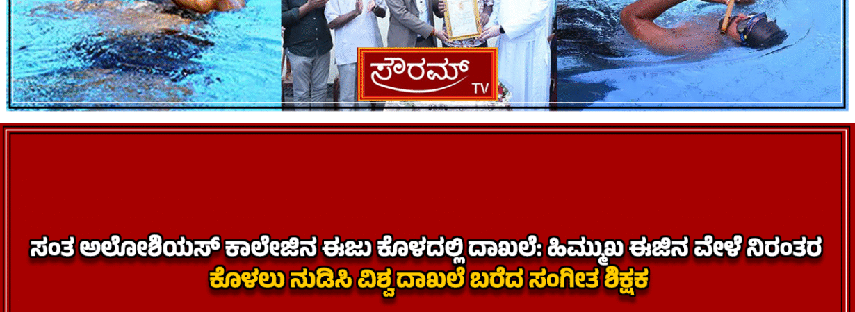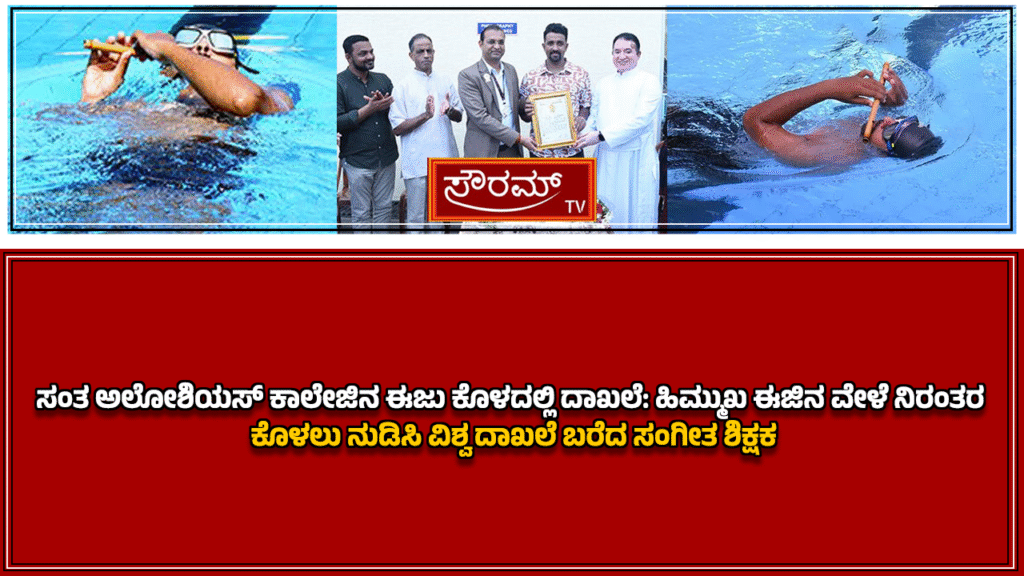 ಸಂತ ಅಲೋಶಿಯಸ್ ಕಾಲೇಜಿನ ಈಜು ಕೊಳದಲ್ಲಿ ದಾಖಲೆ: ಹಿಮ್ಮುಖ ಈಜಿನ ವೇಳೆ ನಿರಂತರ ಕೊಳಲು ನುಡಿಸಿ ವಿಶ್ವ ದಾಖಲೆ ಬರೆದ ಸಂಗೀತ ಶಿಕ್ಷಕ.