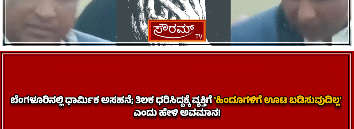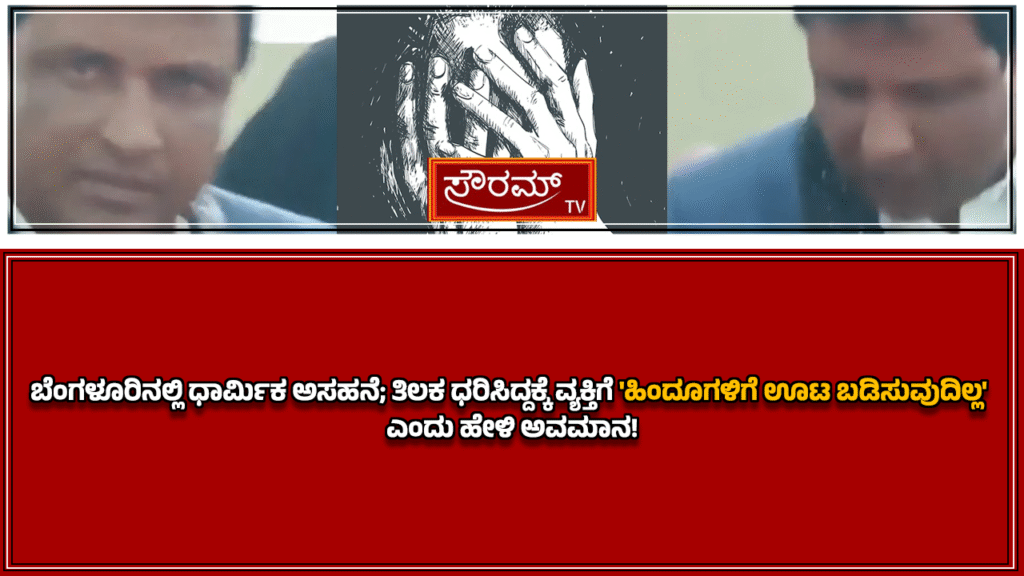 ಬೆಂಗಳೂರಿನಲ್ಲಿ ಧಾರ್ಮಿಕ ಅಸಹನೆ; ತಿಲಕ ಧರಿಸಿದ್ದಕ್ಕೆ ವ್ಯಕ್ತಿಗೆ ‘ಹಿಂದೂಗಳಿಗೆ ಊಟ ಬಡಿಸುವುದಿಲ್ಲ’ ಎಂದು ಹೇಳಿ ಅವಮಾನ!