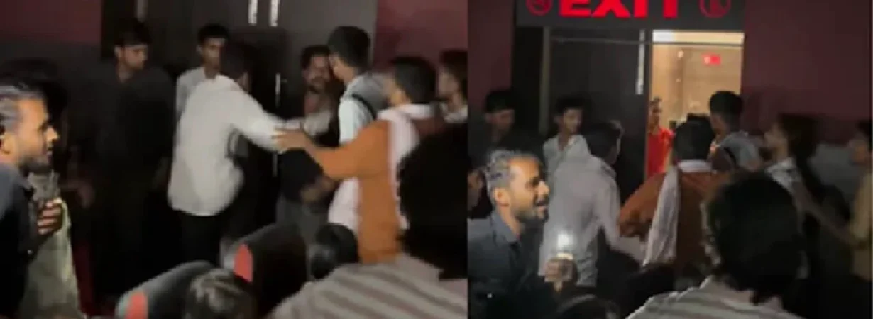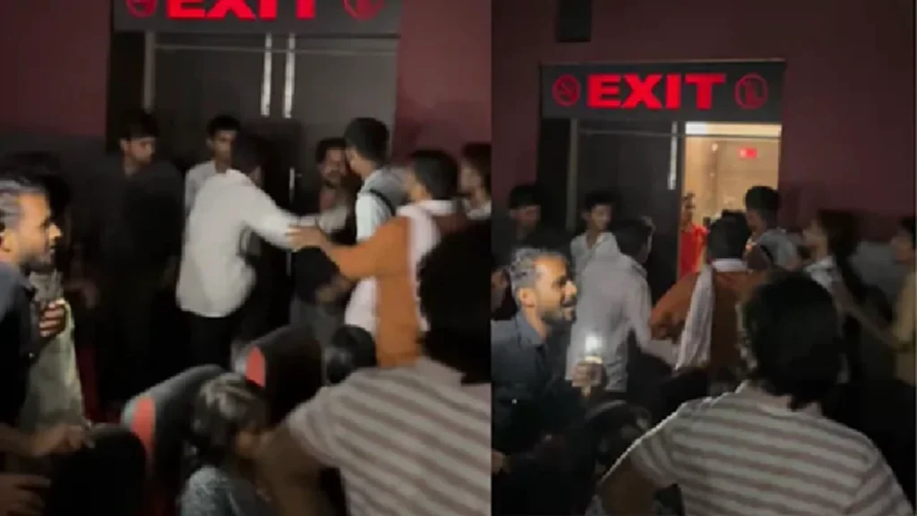 ವೈರಲ್ ವಿಡಿಯೊದ ಆರಂಭದಲ್ಲಿ ಇಬ್ಬರು ಪುರುಷರು ಅನಿರೀಕ್ಷಿತವಾಗಿ ಮುಖಾಮುಖಿಯಾಗುತ್ತಿರುವುದು ಕಂಡು ಬಂದಿದೆ. ಸಾಮಾಜಿಕ ಮಾಧ್ಯಮದಲ್ಲಿ ಹಂಚಿಕೊಳ್ಳಲಾದ ಪೋಸ್ಟ್ ಪ್ರಕಾರ, ಇಬ್ಬರೂ ಒಂದೇ ಹುಡುಗಿಯೊಂದಿಗೆ ಡೇಟಿಂಗ್ ಮಾಡುತ್ತಿದ್ದರು ಎನ್ನಲಾಗಿದೆ. ಸಿನಿಮಾ ಪ್ರಸಾರವಾಗುತ್ತಿದ್ದಂತೆ ಇಬ್ಬರು ಯುವಕರ ಮಧ್ಯೆ ಜಗಳ ಆರಂಭವಾಗಿದೆ. ಪರಸ್ಪರ ಒದೆಯುತ್ತಾ, ಗುದ್ದಾಡಿದ್ದಾರೆ. ಇತರ ಪ್ರೇಕ್ಷಕರು ಸುತ್ತಲೂ ಗುಂಪುಗೂಡುವುದನ್ನು ಕಾಣಬಹುದು. ಕೆಲವರು ಜಗಳ ಬಿಡಿಸಲು ಮುಂದಾಗುತ್ತಾರೆ. ಆದರೆ ಇತರರು ತಮ್ಮ ಫೋನ್‌ಗಳನ್ನು ಹೊರತೆಗೆದು ಘಟನೆಯನ್ನು ರೆಕಾರ್ಡ್ ಮಾಡಿದ್ದಾರೆ.
