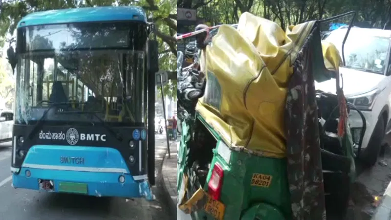 ಚಿನ್ನಸ್ವಾಮಿ ಸ್ಟೇಡಿಯಂ ಮುಂದೆ ಸರಣಿ ಅಪಘಾತ: ಇವಿ ಬಸ್ ಚಾಲಕನ ನಿರ್ಲಕ್ಷ್ಯಕ್ಕೆ 9 ವಾಹನಗಳು ಜಖಂ