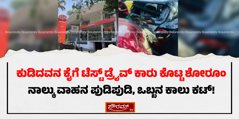 ಕುಡಿದವನ ಕೈಗೆ ಟೆಸ್ಟ್ ಡ್ರೈವ್ ಕಾರು ಕೊಟ್ಟ ಶೋರೂಂ: ನಾಲ್ಕು ವಾಹನ ಪುಡಿಪುಡಿ, ಒಬ್ಬನ ಕಾಲು ಕಟ್!