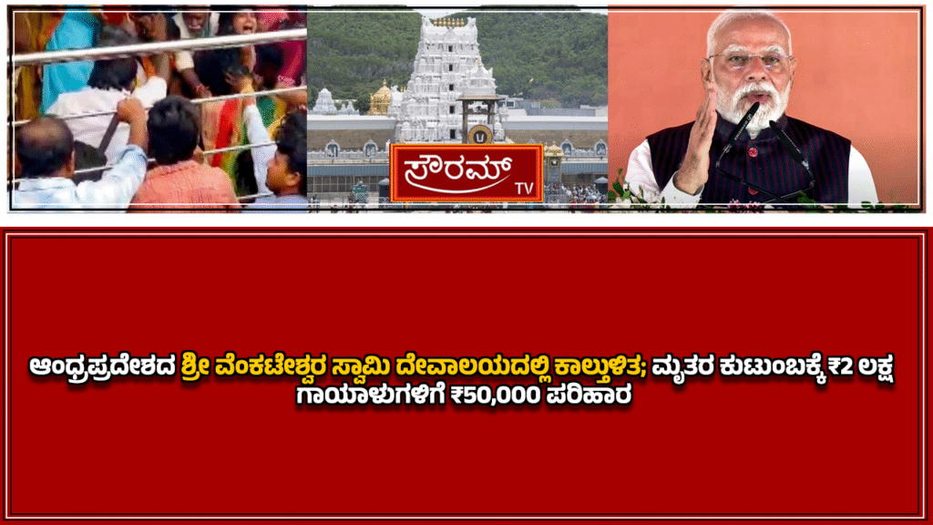 ಆಂಧ್ರಪ್ರದೇಶದ ಶ್ರೀ ವೆಂಕಟೇಶ್ವರ ಸ್ವಾಮಿ ದೇವಾಲಯದಲ್ಲಿ ಕಾಲ್ತುಳಿತ; ಮೃತರ ಕುಟುಂಬಕ್ಕೆ ₹2 ಲಕ್ಷ, ಗಾಯಾಳುಗಳಿಗೆ ₹50,000 ಪರಿಹಾರ