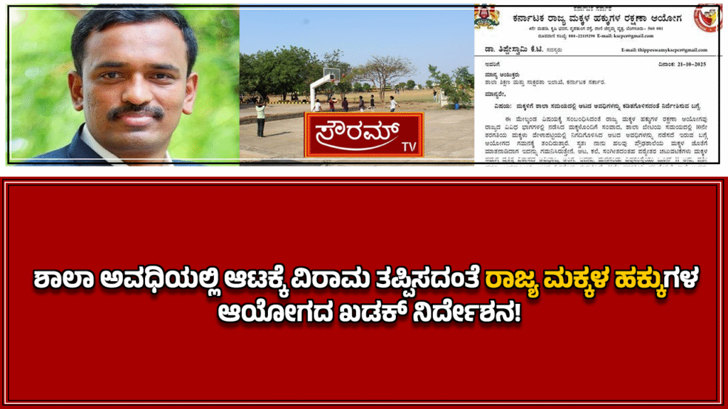 ಶಾಲಾ ಅವಧಿಯಲ್ಲಿ ಆಟಕ್ಕೆ ವಿರಾಮ ತಪ್ಪಿಸದಂತೆ ರಾಜ್ಯ ಮಕ್ಕಳ ಹಕ್ಕುಗಳ ಆಯೋಗದ ಖಡಕ್ ನಿರ್ದೇಶನ!