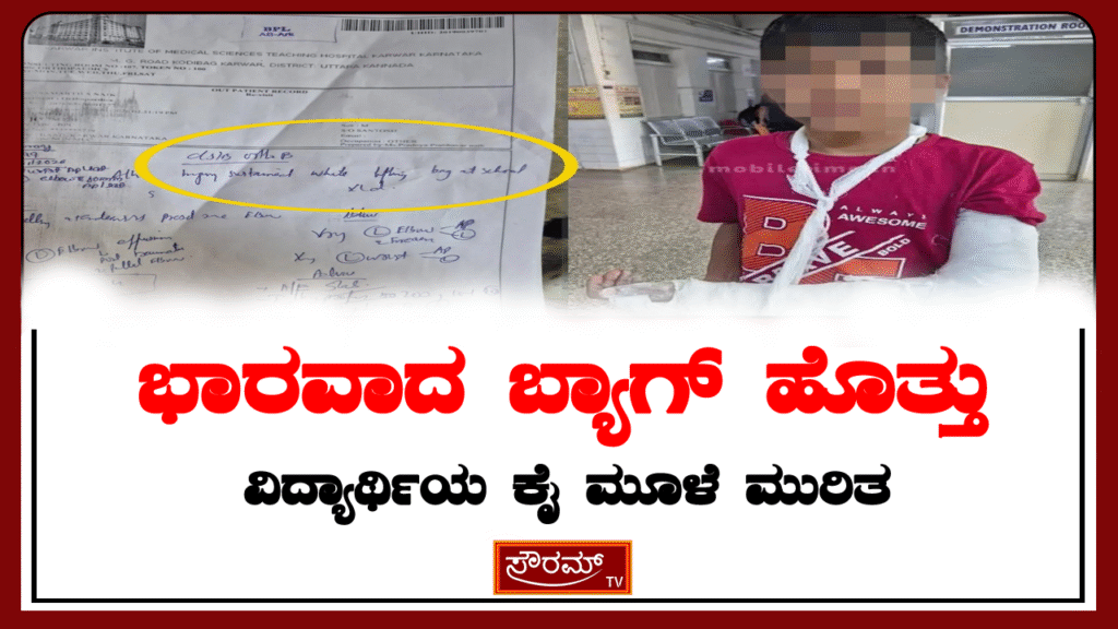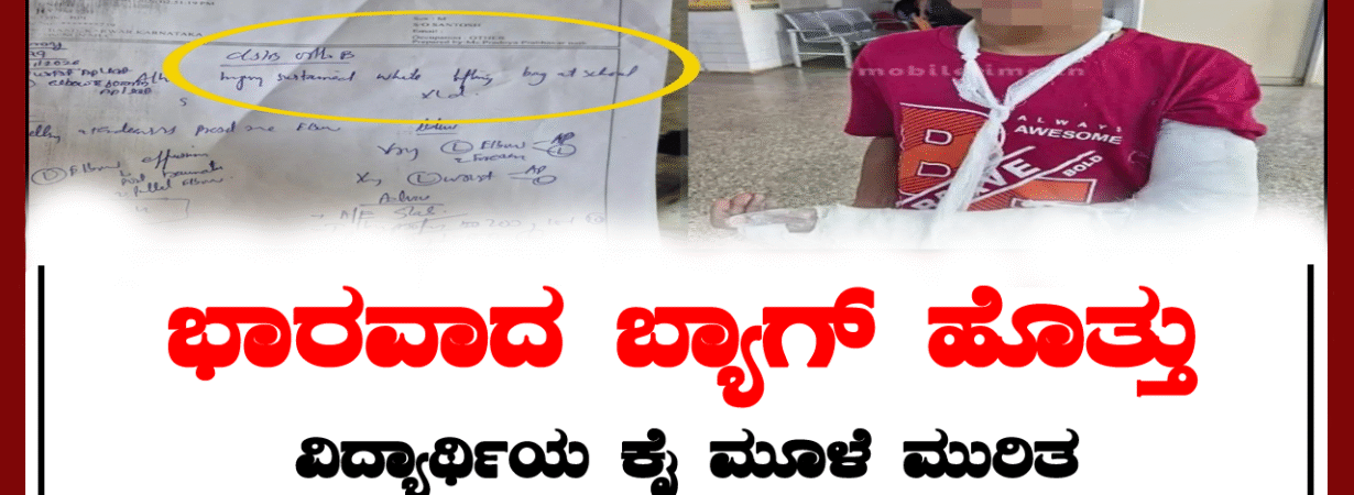 ಭಾರವಾದ ಬ್ಯಾಗ್ ಹೊತ್ತು ವಿದ್ಯಾರ್ಥಿಯ ಕೈ ಮೂಳೆ ಮುರಿತ