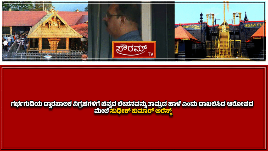 ಗರ್ಭಗುಡಿಯ ದ್ವಾರಪಾಲಕ ವಿಗ್ರಹಗಳಿಗೆ ಚಿನ್ನದ ಲೇಪನವನ್ನು ತಾಮ್ರದ ಹಾಳೆ ಎಂದು ದಾಖಲಿಸಿದ ಆರೋಪದ ಮೇಲೆ ಸುಧೀಶ್ ಕುಮಾರ್ ಅರೆಸ್ಟ್.