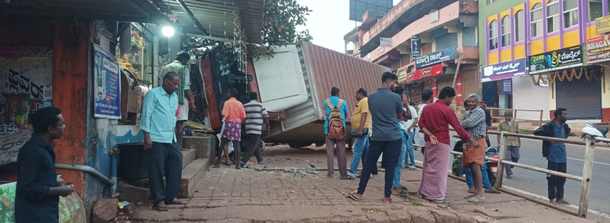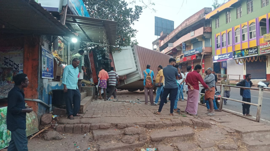 ಸುಳ್ಯ: ನಿದ್ದೆ ಮಂಪರಿನಿಂದ ನಿಯಂತ್ರಣ ತಪ್ಪಿದ ಕಂಟೈನರ್ ಪಲ್ಟಿ – ಪಿಎಲ್ಡಿ ಬ್ಯಾಂಕ್ ತಡೆಗೋಡೆಗೆ ಹಾನಿ