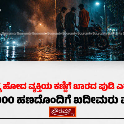 ಮಂಗಳೂರು: ಬೈಕ್ ಕೆಟ್ಟಿದೆ ಎಂದು ನಂಬಿಸಿ, ಸಹಾಯಕ್ಕೆ ಬಂದ ವ್ಯಕ್ತಿಯ ಕಣ್ಣಿಗೆ ಖಾರದ ಪುಡಿ ಎರಚಿ ಸ್ಕೂಟರ್ ಡಿಕ್ಕಿಯಲ್ಲಿದ್ದ ನಗದನ್ನು ದೋಚಿರುವ ಘಟನೆ ಬಂಗ್ಲೆಗುಡ್ಡೆ ಎಂಬಲ್ಲಿ ಭಾನುವಾರ ರಾತ್ರಿ ನಡೆದಿದೆ. ಗಂಜಿಮಠದ ಝಾರಾ ಹಾಲ್‌ನಲ್ಲಿ