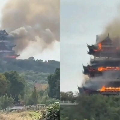 ಚೀನಾ: ಚೀನಾದ ಜಿಯಾಂಗ್ಸು ಪ್ರಾಂತ್ಯದ ಜಾಂಗ್ಜಿಯಾಗ್ಯಾಂಗ್‌ನಲ್ಲಿರುವ 1,500 ವರ್ಷಗಳಷ್ಟು ಹಳೆಯದಾದ ಯೋಂಗ್‌ಕಿಂಗ್ ದೇವಾಲಯದಲ್ಲಿ ಭಾರಿ ಬೆಂಕಿ ಕಾಣಿಸಿಕೊಂಡಿದೆ. ಇದಕ್ಕೆ ಸಂಬಂಧಿಸಿದ ವಿಡಿಯೋ ವೈರಲ್ ಆಗಿದೆ. ಶತಮಾನಗಳಷ್ಟು ಹಳೆಯದಾದ ಬೌದ್ಧ ವಾಸ್ತುಶಿಲ್ಪ ಮತ್ತು ಆಧ್ಯಾತ್ಮಿಕ ಮಹತ್ವಕ್ಕೆ