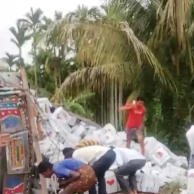 ಶಿರಾ : ಸೇಬು ತುಂಬಿದ ಲಾರಿ ಪಲ್ಟಿಯಾಗಿ, ರಸ್ತೆಗೆ ಚೆಲ್ಲಾಪಿಲ್ಲಿಯಾದ ಹಣ್ಣುಗಳನ್ನು ಜನರು ಉಚಿತವಾಗಿ ಎತ್ತಿಕೊಂಡು ಹೋದ ಘಟನೆ ನಡೆದಿದೆ. ಚಾಲಕನ ನಿಯಂತ್ರಣ ತಪ್ಪಿ ಈ ಅಪಘಾತ ಸಂಭವಿಸಿದ್ದು, ಲಕ್ಷಾಂತರ ರೂಪಾಯಿ ಮೌಲ್ಯದ ಸೇಬುಗಳು