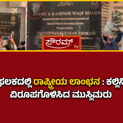 ದರ್ಗಾದ ಫಲಕದಲ್ಲಿ ರಾಷ್ಟ್ರೀಯ ಲಾಂಛನ : ಕಲ್ಲಿನಿಂದ ಜಜ್ಜಿ ವಿರೂಪಗೊಳಿಸಿದ ಮುಸ್ಲಿಮರು