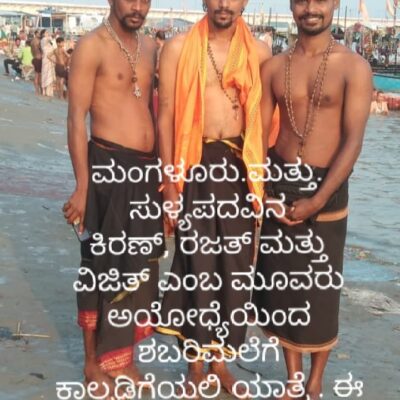 ಮಂಗಳೂರು :ಅಯೋಧ್ಯೆಯ ಶ್ರೀರಾಮ ಜನ್ಮಭೂಮಿಯಿಂದ ಕೇರಳದ ಪುಣ್ಯಕ್ಷೇತ್ರ ಶಬರಿಮಲೆ ಅಯ್ಯಪ್ಪ ಸ್ವಾಮಿ ಸನ್ನಿಧಾನದವರೆಗೆ ಸುಮಾರು 2,600 ಕಿಲೋಮೀಟರ್ ದೂರದ ಪಾದಯಾತ್ರೆಯನ್ನು ಕರ್ನಾಟಕದ ಮೂವರು ಅಯ್ಯಪ್ಪ ಭಕ್ತರು ಆರಂಭಿಸಿದ್ದಾರೆ. ಮಂಗಳೂರಿನ ಕಿರಣ್ ಮತ್ತು ಸುಳ್ಯಪದವಿನ ರಜತ್ ಹಾಗೂ