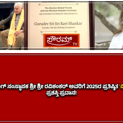 ಬೋಸ್ಟನ್: ಆರ್ಟ್ ಆಫ್ ಲಿವಿಂಗ್ ಸಂಸ್ಥಾಪಕ ಶ್ರೀ ರವಿಶಂಕರ್ ಅವರಿಗೆ ಬೋಸ್ಟನ್ ಗ್ಲೋಬಲ್ ಫೋರಮ್ 2025 ರ ವಿಶ್ವ ಶಾಂತಿ ನಾಯಕ ಮತ್ತು ಭದ್ರತಾ ಪ್ರಶಸ್ತಿಯನ್ನು ನೀಡಲಾಗಿದೆ. ವಿಶ್ವ ಶಾಂತಿ, ಸಮನ್ವಯ ಮತ್ತು ಮಾನವೀಯ