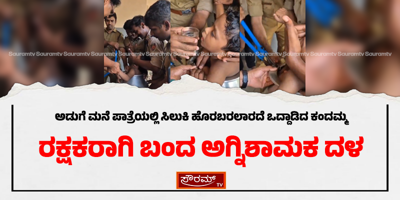 ಅಡುಗೆ ಮನೆ ಪಾತ್ರೆಯಲ್ಲಿ ಸಿಲುಕಿ ಹೊರಬರಲಾರದೆ ಒದ್ದಾಡಿದ ಕಂದಮ್ಮ: ರಕ್ಷಕರಾಗಿ ಬಂದ ಅಗ್ನಿಶಾಮಕ ದಳ