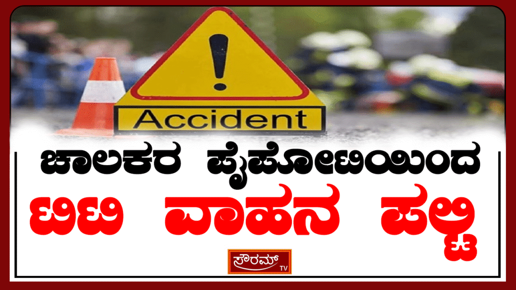 ಚಾಲಕರ ಪೈಪೋಟಿಯಿಂದ ಟಿಟಿ ವಾಹನ ಪಲ್ಟಿ