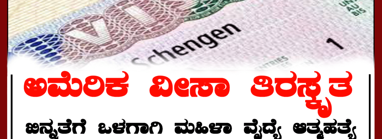 ಅಮೆರಿಕ ವೀಸಾ ತಿರಸ್ಕೃತ; ಖಿನ್ನತೆಗೆ ಒಳಗಾಗಿ ಮಹಿಳಾ ವೈದ್ಯೆ ಆತ್ಮಹತ್ಯೆ