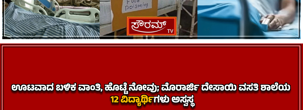ಊಟವಾದ ಬಳಿಕ ವಾಂತಿ, ಹೊಟ್ಟೆ ನೋವು; ಮೊರಾರ್ಜಿ ದೇಸಾಯಿ ವಸತಿ ಶಾಲೆಯ 12 ವಿದ್ಯಾರ್ಥಿಗಳು ಅಸ್ವಸ್ಥ.