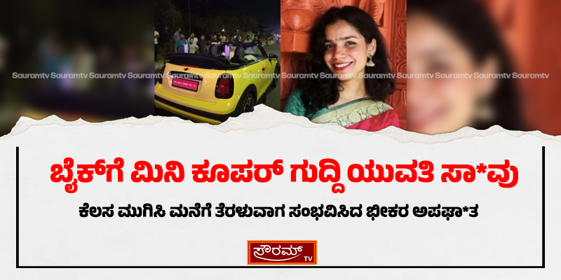 ಬೈಕ್ಗೆ ಮಿನಿ ಕೂಪರ್ ಗುದ್ದಿ ಯುವತಿ ಸಾ*ವು; ಕೆಲಸ ಮುಗಿಸಿ ಮನೆಗೆ ತೆರಳುವಾಗ ಸಂಭವಿಸಿದ ಭೀಕರ ಅಪಘಾ*ತ